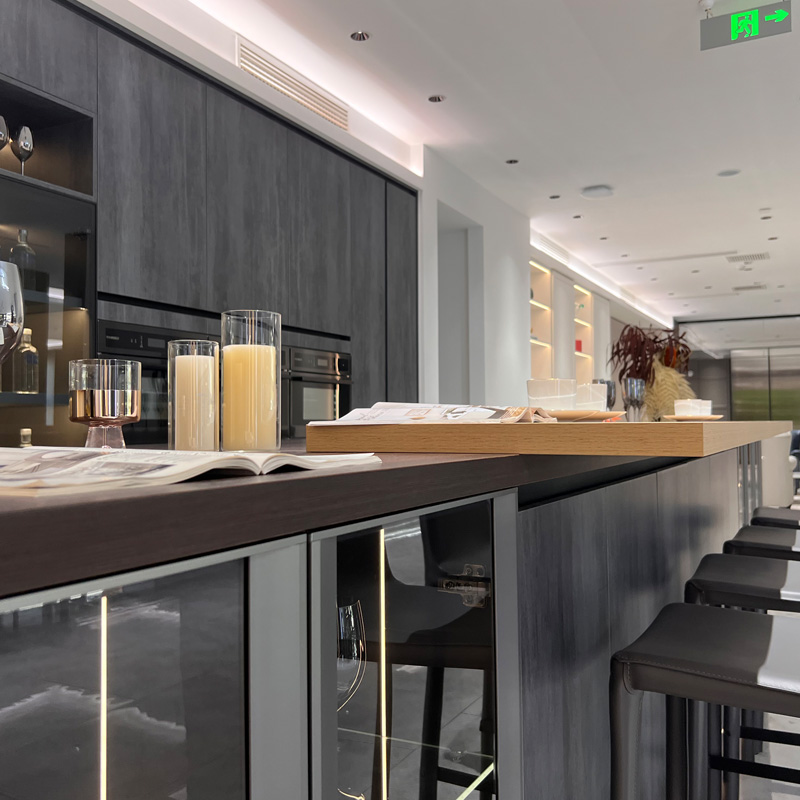 모든 하드웨어는 히든 4 in 1 연결을 사용하여 주방 디테일과 처리된 디테일이 아름다워 주방의 품격을 높여줍니다.